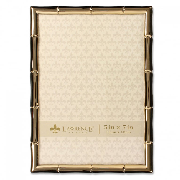 Main view Product Details Lawrence Frames® Goldplate BAMBOO 5x7 by Lawrence® — Gold plate frame is nicely crafted with a classic bamboo style trim.Attractively backed for wonderful desk appeal.Dual easel back for portrait or landscape tabletop display. Glare resistant glass lens.By Lawrence®. Goldplate BAMBOO 5x7 by Lawrence® Model #751148072335 List $29.00 You pay $22.95 This item IS in stock and can be expected to ship 01/29/2026 Your Price Match is Active Your request for a price of $0.00 for a minimum quantity of has been accepted. You have [time] left to purchase this item for $0.00 instead of $22.95 each. Find a Lower Price? We BEAT All Authorized Retailers [?] FEATURESDisplays:5"x7"Material:Gold plateFinish:GoldOccasion:Anniversary, Birthday, Business & office, Corporate gifts, Engagement, Friendship, Good luck, Home decorating, Weekend Host Gifts, Housewarming, Mother`s Day, Retirement, Thank-Motivate-Reward, Wedding, Father`s DayStyle:Asian Zen, Classic, TraditionalOrientation:BothBrand:Lawrence Frames®Display Type:Desktop or Wall This item ships in its own box SHARE THIS ITEM Share on Facebook