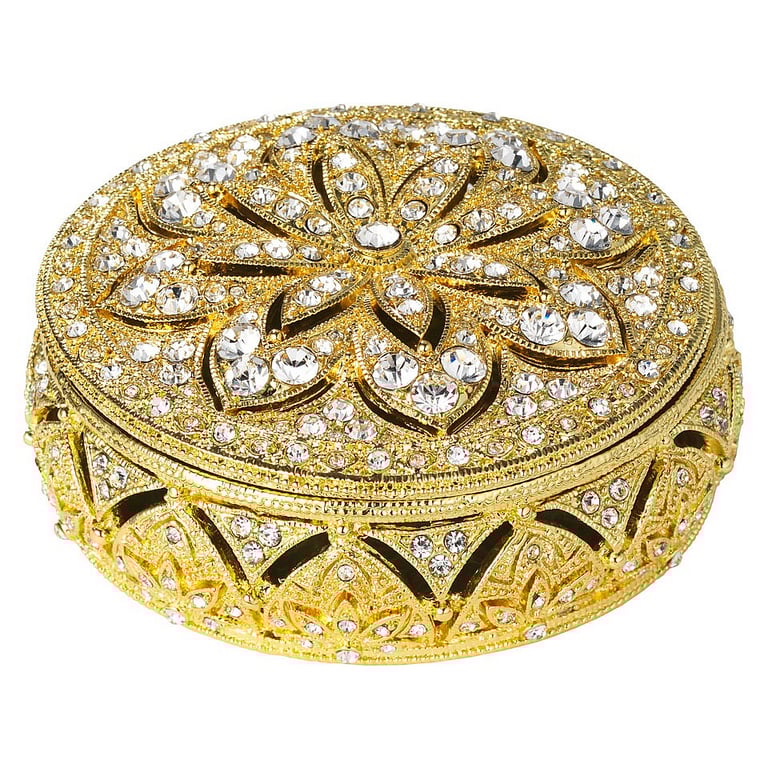 Main view Product Details Olivia Riegel GOLD WINDSOR ROUND BOX by Olivia Riegel® — Reminiscent of a time of elegance past, Olivia Riegel's quintessential WINDSOR is strikingly luxe to the eye and the hand. Estate jewelry inspiration with hundreds of hand-set clear Swarovski® crystals in cast pewter with 18kt museum gold finish. Footed with silk interior. An original design keepsake from the Olivia Riegel® collection. SendAFrame proudly carries the entire photo frame Olivia Riegel® collection, and related home decor pieces like this box, for your shopping convenience. GOLD WINDSOR ROUND BOX by Olivia Riegel® OLIVIA RIEGEL® FALL CELEBRATION SAVINGS - Buy More / Save More * Add this item to your cart for the full details of this promotion. Conditions may apply. Model #55016207 $110.00 This item IS in stock and can be expected to ship 11/18/2025 Your Price Match is Active Your request for a price of $0.00 for a minimum quantity of has been accepted. You have [time] left to purchase this item for $0.00 instead of $110.00 each. Find a Lower Price? We BEAT All Authorized Retailers [?] FEATURESMaterial:Jewels/crystalFinish:Gold, ClearOccasion:Anniversary, Birthday, Friendship, Housewarming, Mother`s Day, Romantic, Valentine`s Day, WeddingStyle:Ornate, Romantic, TraditionalBrand:Olivia RiegelDisplay Type:Desktop Only Approx. Overall Dimensions:3"x1 1/4"x3" This item ships in its own box SHARE THIS ITEM Share on Facebook