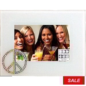 Product Details SIXTREES® GLASS Expressions PEACE frame — PEACE OUT Special bevelled white glass with set colored rhinestones creates a statement piece (peace) that is a terrific keepsake gift frame.Nice hardboard backing for tabletop display. Glare resistant glass lens.Crafted by Sixtrees®. GLASS Expressions PEACE frame Model #783729161053 List $14.50 You pay $7.19 In stock Can be shipped today [?] Your Price Match is Active Your request for a price of $0.00 for a minimum quantity of has been accepted. You have [time] left to purchase this item for $0.00 instead of $7.19 each. Find a Lower Price? We BEAT All Authorized Retailers [?] FEATURESDisplays:4"x6"Material:GlassFinish:ClearOccasion:Birthday, Friendship, Good luck, Sweet 16Style:Contemporary, Teens & tweens, Words & whimsy, Pop Culture, College DormOrientation:Horizontal OnlyBrand:SIXTREES® This item ships in its own box SHARE THIS ITEM Share on Facebook