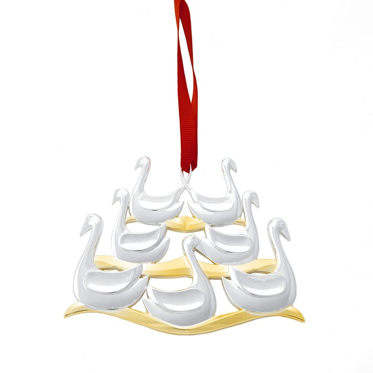 Main view Product Details Nambe 12 Days: Seven Swans A Swimming Ornament by Nambe® — On the seventh day of Christmas, the swans came a swimming. Part of the Twelve Days of Christmas Ornament Series, this ornament depicts the Seven Swans a Swimming in silver with golden touches in the background. Made of Silver Plate with Gold Plated Accent Red satin ribbon 4"W x 3½”H Wipe clean with dry cloth Shipped in Nambe signature gift box Designed by Mike Altomari Produced by Nambe®. 12 Days: Seven Swans A Swimming Ornament by Nambe® Nambe Santa Fe® FALL CELEBRATION Savings - ends SundayBuy More / Save More * Add this item to your cart for the full details of this promotion. Conditions may apply. Model #75012790 $35.95 This item IS in stock and can be expected to ship 11/19/2025 Your Price Match is Active Your request for a price of $0.00 for a minimum quantity of has been accepted. You have [time] left to purchase this item for $0.00 instead of $35.95 each. Find a Lower Price? We BEAT All Authorized Retailers [?] FEATURESMaterial:SilverplateFinish:Gold, SilverOccasion:ChristmasStyle:Sports & leisure, Words & whimsy, Expressions > ready made, Preppy, ContemporaryBrand:NambeDisplay Type:Wall Only Approx. Overall Dimensions:4"x3 1/4"x1/2" This item ships in its own box SHARE THIS ITEM Share on Facebook