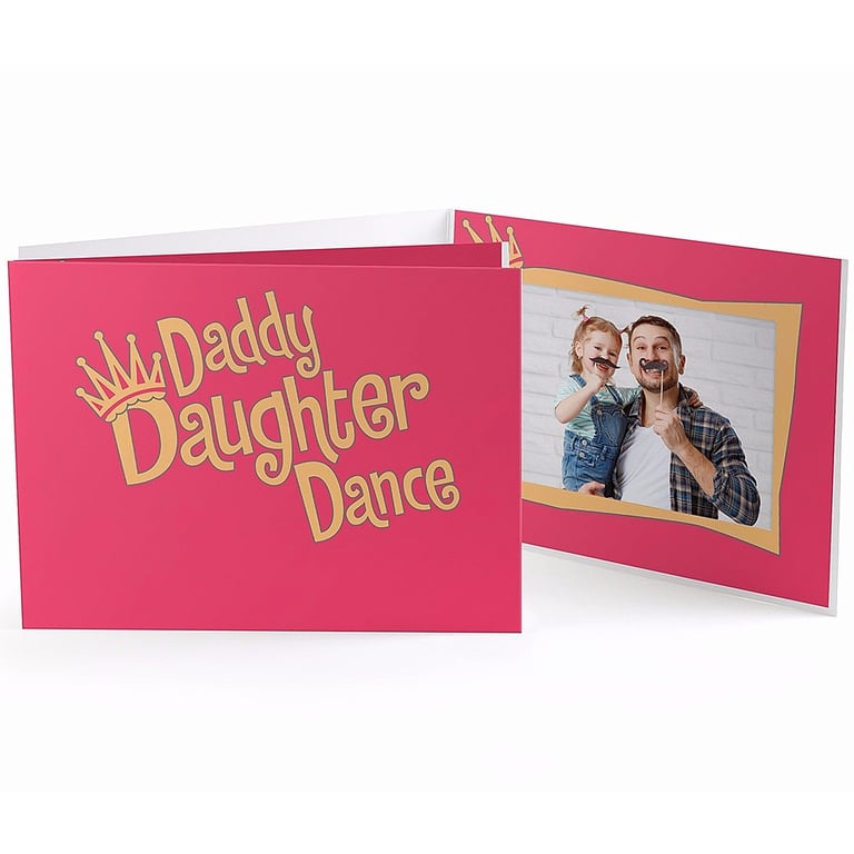 Main view Sizing Reverse EZ Load Slide-In Product Details Collectors Gallery Our Colorful DADDY DAUGHTER DANCE 6x4 Photo Folder — Frame your photos and prints like a professional studio photographer with our adorable DADDY & DAUGHTER DANCE print folders. Lightweight smooth finish card stock Accommodates landscape 6" x 4" prints Picture opening measures 5-5/8" x 3-5/8" Price INCLUDES Personalizing (optional) Window border glued along top edge (bottom edge open) Printed design on front cover, back cover, and inside window border Lightweight, smooth finish paper Folders shipped flat, not folded Envelopes available separately (not required). See "Accessories" below. Folders are priced individually; minimum 50. Crafted expressly for SendAFrame. Our Colorful DADDY DAUGHTER DANCE 6x4 Photo Folder Model #52136063 $1.75 This item IS in stock and can be expected to ship 11/26/2025 Your Price Match is Active Your request for a price of $0.00 for a minimum quantity of has been accepted. You have [time] left to purchase this item for $0.00 instead of $1.75 each. Find a Lower Price? We BEAT All Authorized Retailers [?] FEATURESDisplays:4"x6"Material:Card-stockFinish:Gold, PinkOccasion:Group Events + PartiesStyle:Contemporary, Teens & tweens, Words & whimsyOrientation:Horizontal OnlyDisplay Type:not applicable n/a Approx. Overall Dimensions:6 1/8"x8 3/8" SHARE THIS ITEM Share on Facebook