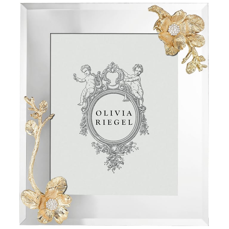 Product Details Olivia Riegel GOLD BOTANICA 8x10 frame by Olivia Riegel® — Mirrored glass with gold finished cast pewter blossom. Hand-set clear European crystals. Rich moiré silk back. Dual easel back for tabletop display in either direction. Elegant bevelled glass lens. Signature gift box. An original design frame from the Olivia Riegel® collection. SendAFrame proudly carries the entire Olivia Riegel® collection for your shopping convenience. GOLD BOTANICA 8x10 frame by Olivia Riegel® OLIVIA RIEGEL® HOLIDAY CELEBRATION SAVINGS - Buy More / Save More * Add this item to your cart for the full details of this promotion. Conditions may apply. Model #850188008264 $220.00 This item IS in stock and can be expected to ship 01/16/2026 Your Price Match is Active Your request for a price of $0.00 for a minimum quantity of has been accepted. You have [time] left to purchase this item for $0.00 instead of $220.00 each. Find a Lower Price? We BEAT All Authorized Retailers [?] FEATURESDisplays:8"x10"Material:Jewels/crystalFinish:Clear, GoldOccasion:Anniversary, Birthday, Congratulations, Engagement, Graduation, Home decorating, Mother`s Day, Romantic, Thank-Motivate-Reward, WeddingStyle:Classic, Florals, Ornate, Romantic, TraditionalOrientation:BothBrand:Olivia RiegelDisplay Type:Desktop Only This item ships in its own box SHARE THIS ITEM Share on Facebook