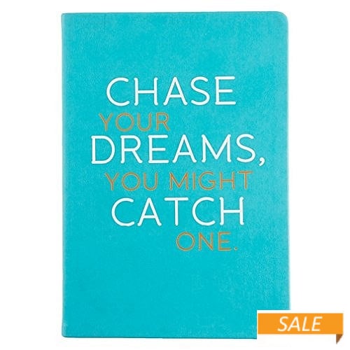 Product Details Èccolo™ Aqua CHASE YOUR DREAMS... Leather-like 6x8 (medium) Lined Journal by Eccolo™ — The SIMPLE Journal series from Eccolo™ is for the serious note taker who who wants a permanent record of memos and thoughts. Chase Your Dreams You Might Catch One Writing journal has a flexible cover that feels like real leather but is vegan-friendly Convenient Desktop or Briefcase size 6" x 8" size (MEDIUM) Bound journal has 256 lined, acid-free, heavy stock pages Section sewn binding keeps pages secure and allows journal to lay flat for ease in both reading and writing Themed especially for capturing all of your heart's desires Crafted and imported by Eccolo™. Aqua CHASE YOUR DREAMS... Leather-like 6x8 (medium) Lined Journal by Eccolo™ Model #826635135296 List $24.00 You pay $11.90 In stock Ships next business day [?] Your Price Match is Active Your request for a price of $0.00 for a minimum quantity of has been accepted. You have [time] left to purchase this item for $0.00 instead of $11.90 each. Find a Lower Price? We BEAT All Authorized Retailers [?] FEATURESMaterial:Leather (faux)Finish:Blue, GoldOccasion:Bon voyage, Christmas, Congratulations, Get well, Good luck, Graduation, Mother`s Day, Sweet 16, Celebrating Travels, Valentine`s DayStyle:Bold Colors, Contemporary, Sports & leisure, Teens & tweens, Words & whimsyBrand:Èccolo™Display Type:not applicable n/a Approx. Overall Dimensions:6"x8" This item ships in its own box SHARE THIS ITEM Share on Facebook