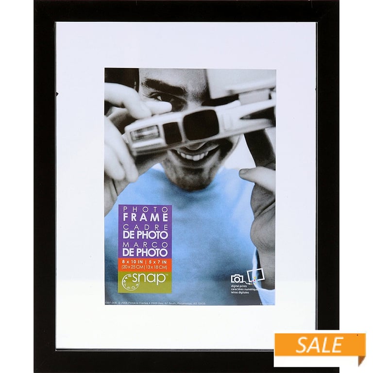 Product Details SNAP Black Float Frame 8x10/5x7 by SNAP™ — Show-off your print with this black furniture-finished solid wood float-style frame. Double glass lenses sandwich your print or photo and show the wall behind the print (so the print appears to "float").Opening is 8"x10" and appears to "float" any size print smaller. A 5"x7" print is ideal!Wall mount is permanently attached to the wood moulding, out of sight.Crafted by SNAP™, the hardest-working division of Nielsen-Bainbridge®. 6/12/2017: Amazon $24.95 Black Float Frame 8x10/5x7 by SNAP™ Model #038555403861 List $14.50 You pay $7.90 In stock Ships next business day [?] Your Price Match is Active Your request for a price of $0.00 for a minimum quantity of has been accepted. You have [time] left to purchase this item for $0.00 instead of $7.90 each. Find a Lower Price? We BEAT All Authorized Retailers [?] FEATURESDisplays:8"x10"Material:Wood (mdf/engineered)Finish:BlackOccasion:Business & office, Friendship, Grandparent`s Day, Home decorating, Housewarming, Teacher gifts, Team & coach gifts, Thank-Motivate-Reward, Celebrating TravelsStyle:Architectural, Contemporary, Hi-tech, Float FramesBrand:SNAPDisplay Type:Wall Only Approx. Overall Dimensions:8 3/4"x10 3/4"x3/4" This item ships in its own box SHARE THIS ITEM Share on Facebook