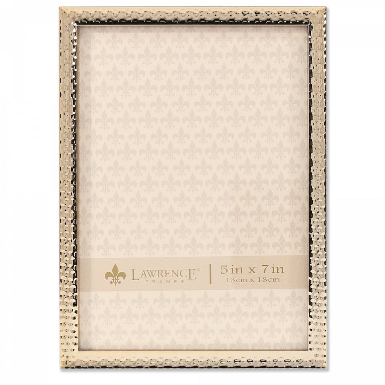 Main view Product Details Lawrence Frames® Hammered Gold finish 5x7 frame by Lawrence® — Decorative gold metal hammered design picture frame. Heavy weight cast metal picture frame is made with exceptional workmanship. Decorative hammered effect picture frame High quality black velvet backing Vertical or horizontal tabletop display or can be hung on a wall with installed hangers Wipe clean with dry cloth, glass included Individually boxed By Lawrence®. Hammered Gold finish 5x7 frame by Lawrence® Model #751148075299 List $30.00 You pay $20.95 This item can be expected to ship by 12/03/2025. Order now by clicking ADD TO CART (below); you are only charged when we actually ship. Or, Click here to be automatically notified when it comes back in stock. Your Price Match is Active Your request for a price of $0.00 for a minimum quantity of has been accepted. You have [time] left to purchase this item for $0.00 instead of $20.95 each. Find a Lower Price? We BEAT All Authorized Retailers [?] This item ships in its own box SHARE THIS ITEM Share on Facebook