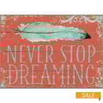 Back to results Scroll Items 10165 of 11383 Family Members 11½x7 NEVER STOP DREAMING Wood Box Sign $9.69 Product Details SIXTREES® EVERYTHING STARTS WITH A DREAM ... Wood 11½x7 Box CW Sign by Sixtrees® — EVERYTHING STARTS WITH A DREAM Designed and produced by Sixtrees®, this adorable box sign will certainly "light-up" a casual room. Sixtrees® is a leader in unique décor for every home and work environment. SendAFrame stocks the entire Sixtrees® photo frame line as well as related home accessories like this. Sixtrees Collection at SendAFrame. EVERYTHING STARTS WITH A DREAM ... Wood 11½x7 Box CW Sign by Sixtrees® Model #29248570 List $19.50 You pay $9.90 In stock Can be shipped today [?] Your Price Match is Active Your request for a price of $0.00 for a minimum quantity of has been accepted. You have [time] left to purchase this item for $0.00 instead of $9.90 each. Find a Lower Price? We BEAT All Authorized Retailers [?] FEATURESMaterial:Wood (full grain)Finish:Multi-Color, TurquoiseOccasion:Friendship, Housewarming, Inspirational, Weekend Host Gifts, Public Area DisplayStyle:Contemporary, Distressed - Weathered, Rustic/Lodge, Santa Fe, Shabby Chic, Sports & leisure, Words & whimsy, Expressions > ready madeBrand:SIXTREES®Display Type:Desktop or Wall Approx. Overall Dimensions:11 1/2"x7"x1 1/2" This item ships in its own box SHARE THIS ITEM Share on Facebook