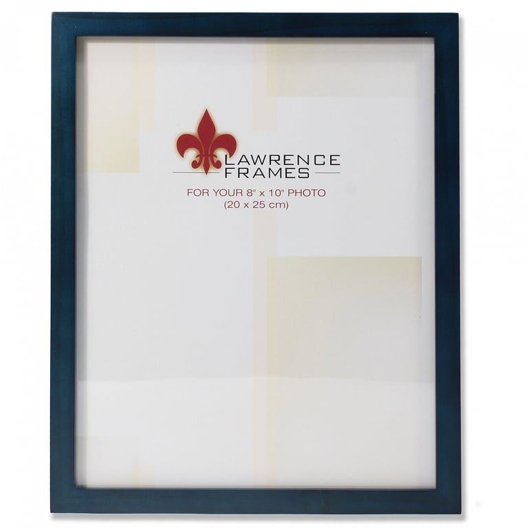 Main view Product Details Lawrence Frames® BLUE square-corner 8x10 Wood frame — Marine-blue frame is elegant and an easy style to decorate with.Constructed of matched varnished hardwoods with tailed corners and exact fitting back. Frame edge is a very contemporary ½" all-around.Dual easel for landscape or portrait tabletop use; wall mounting hooks included. Glare resistant glass lens.This is a classic style at a great price. Quality crafted by Lawrence Frames®. BLUE square-corner 8x10 Wood frame Model #48057769 List $24.50 You pay $20.95 This item IS in stock and can be expected to ship 11/25/2025 Your Price Match is Active Your request for a price of $0.00 for a minimum quantity of has been accepted. You have [time] left to purchase this item for $0.00 instead of $20.95 each. Find a Lower Price? We BEAT All Authorized Retailers [?] FEATURESDisplays:8"x10"Material:Wood (full grain)Finish:BlueOccasion:Business & office, Congratulations, Craft Projects, Home decorating, Teacher gifts, Team & coach gifts, Thank-Motivate-RewardStyle:Architectural, Classic, Contemporary, Minimal, TraditionalOrientation:BothBrand:Lawrence Frames®Display Type:Desktop or Wall This item ships in its own box SHARE THIS ITEM Share on Facebook