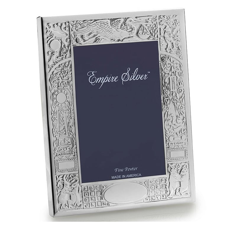 This is the original EMPIRE SILVER® birth record frame in pure pewter, hand-tooled with a wonderful story design. Originally introduced in the 1940's, it is a terrific choice for your special, new baby gift.
