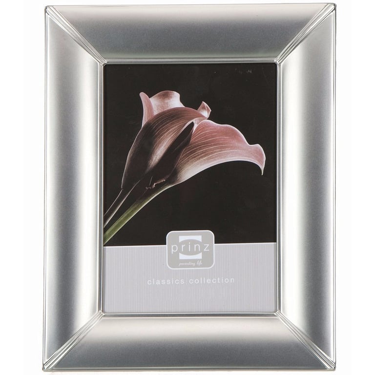 Product Details Prinz® frames & albums Satin Silver finish MADISON 4x6 frame by Prinz — Beautifully designed MADISON frame has graceful curves and style.Non tarnish finish, each piece is lacquered for no hassle us. ual easel velvet back for portrait or landscape desktop display. Wall hooks included for easy hanging. Glare resistant glass lens. Gift boxed.Crafted by Prinz®, maker of fine frames for generations. Satin Silver finish MADISON 4x6 frame by Prinz Model #086981741569 List $12.50 You pay $7.95 In stock Ships next business day [?] Your Price Match is Active Your request for a price of $0.00 for a minimum quantity of has been accepted. You have [time] left to purchase this item for $0.00 instead of $7.95 each. Find a Lower Price? We BEAT All Authorized Retailers [?] FEATURESDisplays:4"x6"Material:SilverplateFinish:SilverOccasion:Anniversary, Business & office, Congratulations, Corporate gifts, Engagement, Friendship, Grandparent`s Day, Home decorating, Weekend Host Gifts, Housewarming, Mother`s Day, Retirement, Teacher gifts, Team & coach gifts, Thank-Motivate-Reward, Celebrating Travels, WeddingStyle:Classic, TraditionalOrientation:BothBrand:Prinz® frames & albumsDisplay Type:Desktop or Wall Approx. Overall Dimensions:6 1/2"x8 1/4"x1/2" This item ships in its own box SHARE THIS ITEM Share on Facebook
