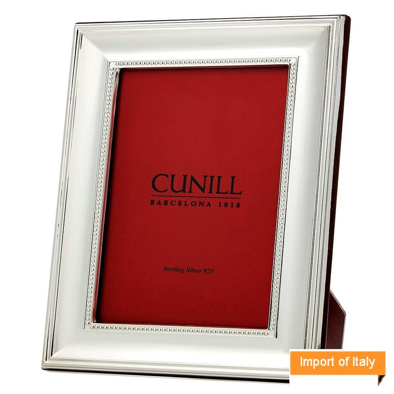 Back to results Scroll Items 7240 of 11163 Family Members 4"x6" - REGAL sterling $196.95 5"x7" - REGAL sterling $245.95 Main view Product Details Cunill® Silver REGAL .925 Fine Sterling Silver 8x10/7x9 frame by Cunill® — Forged from a single sheet of fine sterling, REGAL has a gorgeous bevelled surface and inner caviar beading that shows off their great skill in sculpting metal. Important note: As measurements have been converted from European metric, this frame holds a print 7" x 9½". It is shown as 8x10 as that is how our customers will search for it. Looking for true-size 8x10" Italian Sterling Silver frames? click hereThe Cunill quality is unsurpassed, even to the backing which is a fitted wood piece to easily lock-in your photos. (see Item views for more images). Note the signature sterling lozenge latch - a hallmark of Cunill since 1916. Each piece is debossed on front with the family mark and .925 (sterling silver), proudly giving signature to the quality this 100+ year old company has earned.Cunill sterling never needs polishing - it is finely lacquered to keep it tarnish free.Crafted in and imported from Italy. To view the complete collection, visit: Cunill® REGAL .925 Fine Sterling Silver 8x10/7x9 frame by Cunill® Model #742137118189 List $460.00 You pay $349.95 This item can be expected to ship by 12/05/2025. Order now by clicking ADD TO CART (below); you are only charged when we actually ship. Or, Click here to be automatically notified when it comes back in stock. Your Price Match is Active Your request for a price of $0.00 for a minimum quantity of has been accepted. You have [time] left to purchase this item for $0.00 instead of $349.95 each. Find a Lower Price? We BEAT All Authorized Retailers [?] This item ships in its own box SHARE THIS ITEM Share on Facebook