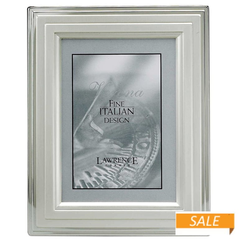 Product Details Lawrence Frames® CLASSY stepped motif in brushed and polished silver — A contemporary silver plated frame with a two tone step design. This silver plated and lacquer coated frame has a brushed finish on the top step, and is surrounded by a thin border of shiny silver which gives it a very rich look. Looks much more expensive than its price.High quality navy blue velvet backing with an easel for vertical or horizontal table top display. By Lawrence® CLASSY stepped motif in brushed and polished silver Model #751148047821 List $22.50 You pay $11.90 In stock Ships next business day [?] Your Price Match is Active Your request for a price of $0.00 for a minimum quantity of has been accepted. You have [time] left to purchase this item for $0.00 instead of $11.90 each. Find a Lower Price? We BEAT All Authorized Retailers [?] This item ships in its own box SHARE THIS ITEM Share on Facebook