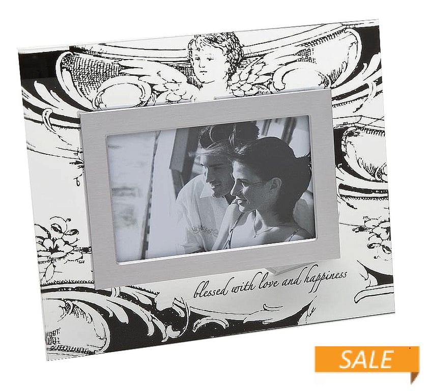 Main view Detail Product Details Enesco BLESSED glass photo 4x6 frame — Blessed with love and happiness This modern glass photo frame is accented with a black angelic motif silk-screened in black. Displays a 4"x6" photo. Glare resistant glass lens. Easel back for horizontal tabletop display. BLESSED glass photo 4x6 frame Model #045544150378 List $14.00 You pay $6.90 In stock Can be shipped today [?] Your Price Match is Active Your request for a price of $0.00 for a minimum quantity of has been accepted. You have [time] left to purchase this item for $0.00 instead of $6.90 each. Find a Lower Price? We BEAT All Authorized Retailers [?] FEATURESDisplays:4"x6"Material:GlassFinish:Clear, BlackOccasion:Anniversary, Birthday, Baptism + Christening, Easter, Friendship, Good luck, Grandparent`s Day, Inspirational, Mother`s DayStyle:Romantic, Words & whimsy, Sentiments | ready madeOrientation:Horizontal OnlyBrand:Enesco This item ships in its own box SHARE THIS ITEM Share on Facebook