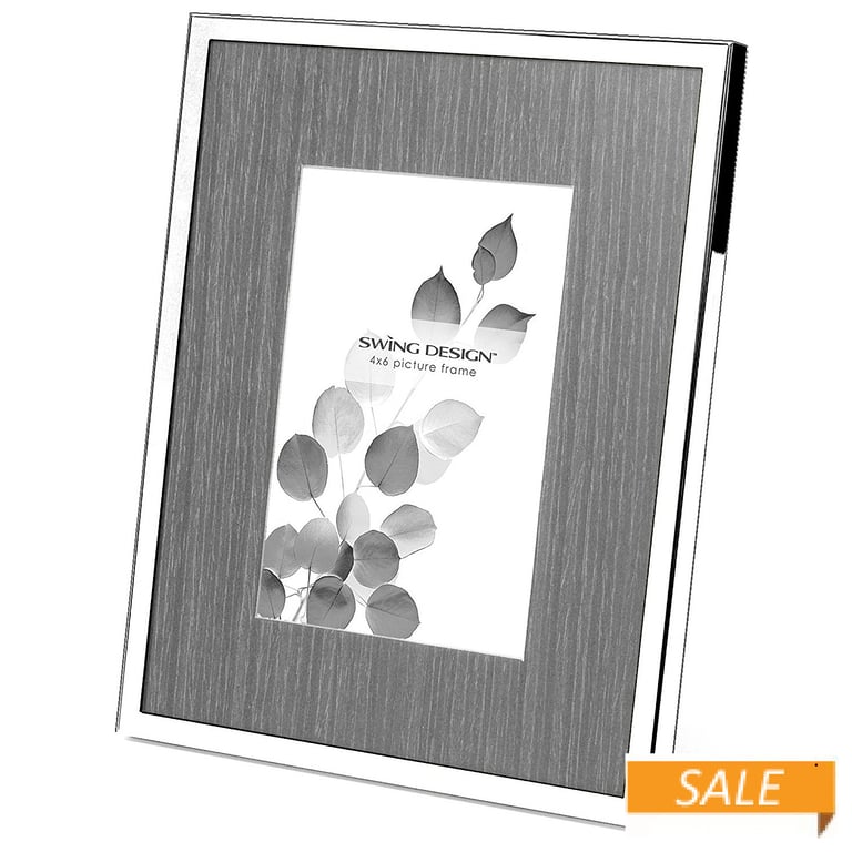 Product Details Swing Design® The Original NOLAN Silverplate w/ GRAY Wood Mat 5x7 frame by Swing Design — NOLAN series frames feature a silver plated metal frame with a charcoal wood mat. Stand vertically or horizontally with desk easel back. Or use included hangers for wall display. Produced by Swing Design®. SendAFrame proudly stocks the entire collection of SWING DESIGN® photo accessories and choice gifts for your shopping convenience. The Original NOLAN Silverplate w/ GRAY Wood Mat 5x7 frame by Swing Design Model #665788872890 List $26.00 You pay $13.90 In stock Ships next business day [?] Your Price Match is Active Your request for a price of $0.00 for a minimum quantity of has been accepted. You have [time] left to purchase this item for $0.00 instead of $13.90 each. Find a Lower Price? We BEAT All Authorized Retailers [?] FEATURESDisplays:5"x7"Material:SilverplateFinish:Gray/Charcoal, SilverOccasion:Anniversary, Birthday, Business & office, Hanukkah, Christmas, Congratulations, Corporate gifts, Engagement, Friendship, Good luck, Graduation, Home decorating, Weekend Host Gifts, Housewarming, Teacher gifts, Team & coach gifts, Thank-Motivate-Reward, Celebrating TravelsStyle:Contemporary, SophisticatedOrientation:BothBrand:Swing Design®Display Type:Desktop or Wall Approx. Overall Dimensions:8"x10"x5/8" This item ships in its own box SHARE THIS ITEM Share on Facebook