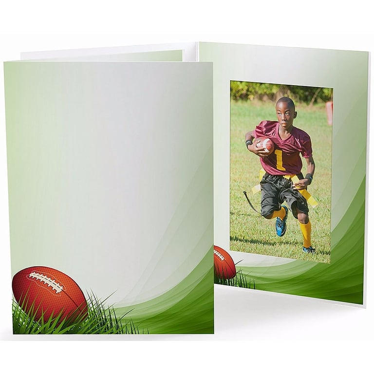 Main view Reverse Sizing Product Details Collectors Gallery FOOTBALL FIELD Cardboard Photo Folder for 4x6 prints — Frame your photos and prints like a professional studio photographer - at a fraction of the price! Overall size measures 6 1/16" x 8 3/16" 4" x 6" size picture opening measures 3 5/8" x 5 5/8" Personalization (optional) included in price - have your name or logo printed on the front for no additional cost Holds one photo on the inside Lightweight smooth finish card stock paper Window border glued along top edge, bottom edge open Shipped flat, not folded Envelopes available separately (see ACCESSORIES) Great for team photos and little leaque events Individually priced; minimum 50. This folder is available with personalizing. Click PERSONALIZE THIS ITEM link for details and pricing. Made in the U.S.A. FOOTBALL FIELD Cardboard Photo Folder for 4x6 prints Model #021352134441 $1.85 This item can be expected to ship by 02/04/2026. Order now by clicking ADD TO CART (below); you are only charged when we actually ship. Or, Click here to be automatically notified when it comes back in stock. Your Price Match is Active Your request for a price of $0.00 for a minimum quantity of has been accepted. You have [time] left to purchase this item for $0.00 instead of $1.85 each. Find a Lower Price? We BEAT All Authorized Retailers [?] FEATURESDisplays:4"x6"Material:Card-stockFinish:Green, Multi-Color, WhiteOccasion:Group Events + PartiesStyle:Contemporary, Teens & tweens, Travel Ready, Sports & leisureOrientation:Vertical OnlyBrand:Collectors GalleryDisplay Type:not applicable n/a Approx. Overall Dimensions:6 1/8"x8 3/8" SHARE THIS ITEM Share on Facebook