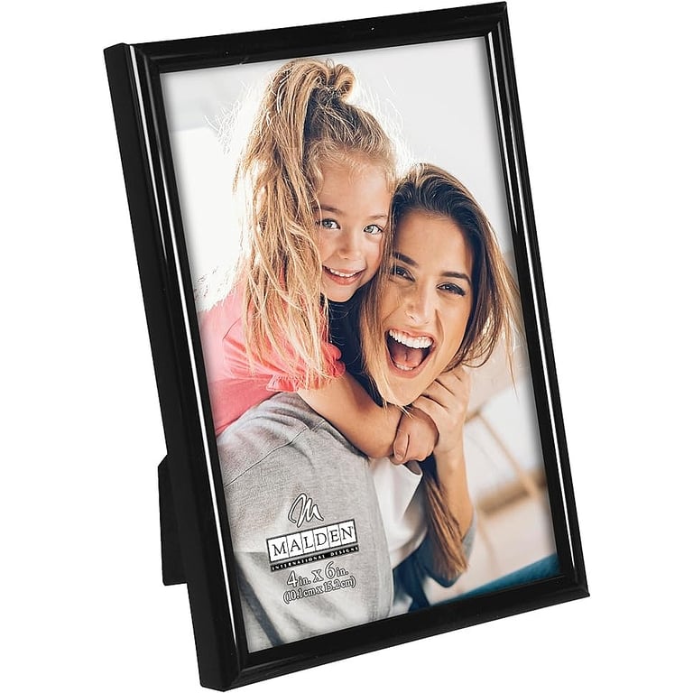 Main view Product Details Malden Designs® METRO Matte-black acrylic 4x6 frame — This economical piece is perfect for volume users. Made of ABS resin and finished to a gloss metallic look. Glare resistant glass lens. Black dual easel backing for landscape or portrait table top display. Or use the wall mount included for easy hanging. By Malden Design®. METRO Matte-black acrylic 4x6 frame Malden Designs® FALL CELEBRATION Savings - ends SundayBuy More / Save More * Add this item to your cart for the full details of this promotion. Conditions may apply. Model #096287997843 List $6.50 You pay $4.95 In stock Ships next business day [?] Your Price Match is Active Your request for a price of $0.00 for a minimum quantity of has been accepted. You have [time] left to purchase this item for $0.00 instead of $4.95 each. Find a Lower Price? We BEAT All Authorized Retailers [?] FEATURESDisplays:4"x6"Material:Acrylic | ResinFinish:BlackOccasion:Business & office, Corporate gifts, Group Events + PartiesStyle:ContemporaryOrientation:BothBrand:Malden Designs®Display Type:Desktop or Wall This item ships in its own box SHARE THIS ITEM Share on Facebook