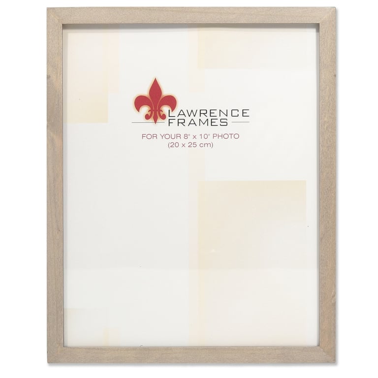 Main view Product Details Lawrence Frames® SQUARE CORNER Gray Stain 8x10 frame by Lawrence Frames® — From Lawrence®, a square corner "flat-top".Frame edge is a very contemporary ½" all-around.Beautifully finished hardwood moulding with tapered seams. Glare resistant glass lens. Attractive black hardboard back. SQUARE CORNER Gray Stain 8x10 frame by Lawrence Frames® Model #48076685 List $24.50 You pay $18.95 In stock Can be shipped today [?] Your Price Match is Active Your request for a price of $0.00 for a minimum quantity of has been accepted. You have [time] left to purchase this item for $0.00 instead of $18.95 each. Find a Lower Price? We BEAT All Authorized Retailers [?] FEATURESDisplays:8"x10"Material:Wood (full grain)Finish:Gray/CharcoalOccasion:Business & office, Corporate gifts, Home decoratingStyle:Classic, Architectural, Minimal, ContemporaryOrientation:BothBrand:Lawrence Frames®Display Type:Desktop or Wall Approx. Overall Dimensions:8 7/8"x10 7/8"x3/4" This item ships in its own box SHARE THIS ITEM Share on Facebook