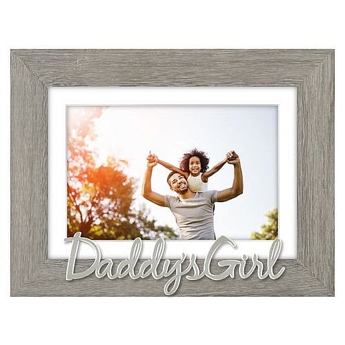 Main view Product Details Malden Designs® DADDY's GIRL - A special 5x7/4x6 gift frame — For your special dad, a daddy's girl frame all his own.Add a great photo and you have a gift that will make any Dad beam with joy anytime he sees it !Fashioned in distressed grey wood stain finish with matte silver applique words. Glare resistant glass lens.Produced by Malden Design®. DADDY's GIRL - A special 5x7/4x6 gift frame Model #096287153003 List $19.00 You pay $14.95 In stock Can be shipped today [?] Your Price Match is Active Your request for a price of $0.00 for a minimum quantity of has been accepted. You have [time] left to purchase this item for $0.00 instead of $14.95 each. Find a Lower Price? We BEAT All Authorized Retailers [?] FEATURESDisplays:4"x6"Material:Wood (mdf/engineered)Finish:Gray/CharcoalOccasion:Birthday, Inspirational, Valentine`s Day, Father`s DayStyle:Contemporary, Words & whimsy, Sentiments | ready madeOrientation:Horizontal OnlyBrand:Malden Designs®Display Type:Desktop or Wall Approx. Overall Dimensions:9 1/8"x7"x1" This item ships in its own box SHARE THIS ITEM Share on Facebook